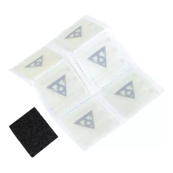 Un kit de patch professionnel sans colle, enfermé dans un boîtier compact en aluminium étanche à l’eau. Le boîtier robuste comporte un compartiment à clipser pour un maillon de chaîne et des goupilles amovibles, il comprend également 6 patchs FlyPaper sans colle. Il garde vos articles de réparation rangés et prêts à l’emploi.