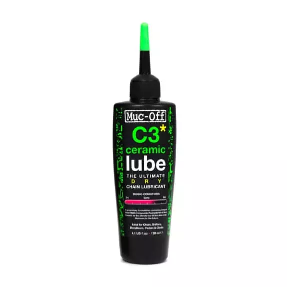 Le lubrifiant Muc-Off C3 Dry Ceramic Lube est une huile de lubrification pour des conditions sèches qui crée un film de longue durée qui améliore le fonctionnement, protège et réduit le frottement de la transmission de la chaîne.