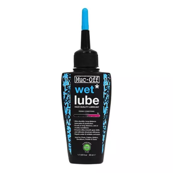 Le lubrifiant Muc-Off Wet Lube est une huile de lubrification pour longue distance qui crée un film de longue durée qui améliore le fonctionnement, protège et réduit le frottement de la transmission de la chaîne.